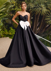 Elegant Black A-Line Sweetheart-Neck Strapless Back Zip Floor-Length Bow Satin Prom Dresses